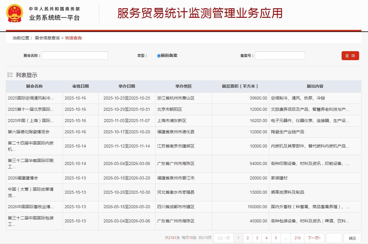境内举办涉外经济技术展览会办展项目备案